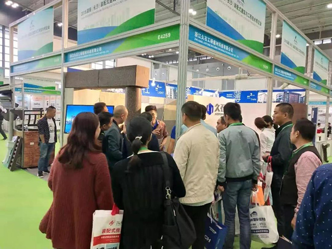 10月15日,2019湖南(長沙)裝配式建筑與工程技術博覽會在長沙國際會展中心拉開帷幕。久石貼片石在會場亮相,吸引了眾多客商的駐足體驗。