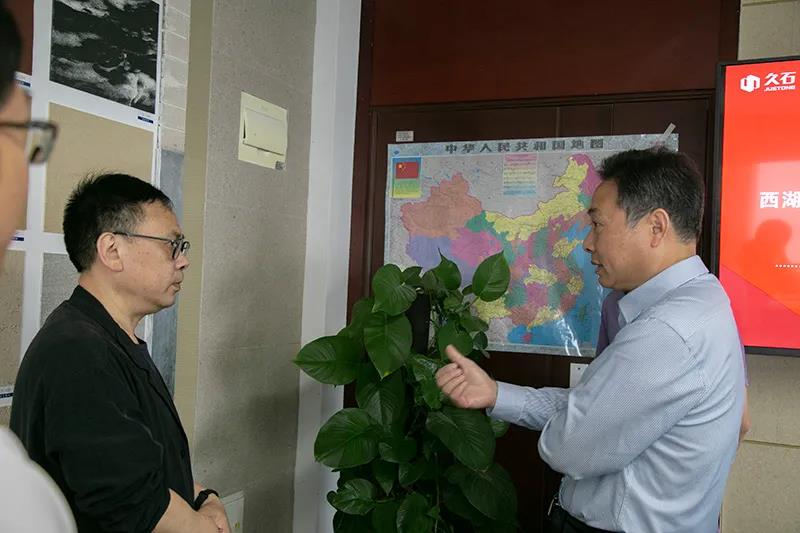5月19日,西湖大學校董、原浙江省教育廳黨工委書記副廳長汪曉村一行來到久石公司參觀考察,久石公司董事長豐新華、總經理蔣宏標陪同調研。